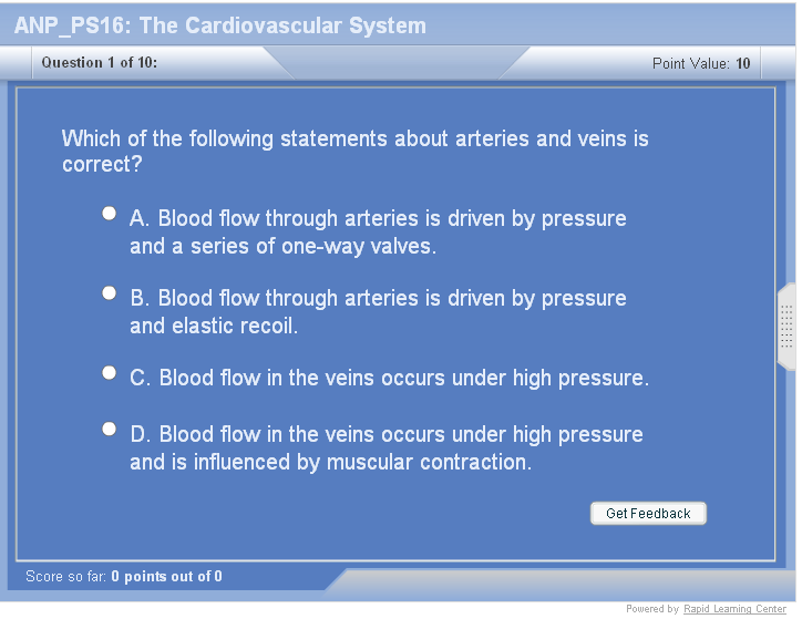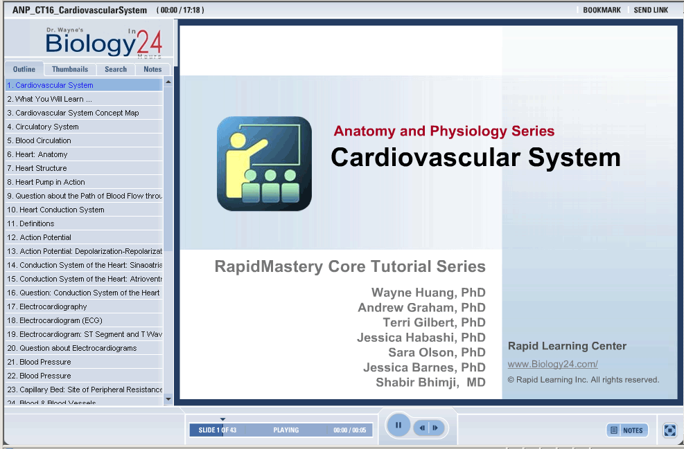 This tutorial presents the cardiovascular system including the heart, blood vessels and components of the blood. One of the major roles of the cardiovascular system is to deliver oxygen taken in at the lungs and deliver it to the tissues.