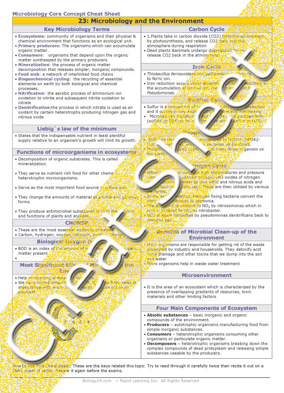 • Definitions of relevant aspects of microbiology as it relates to the environment.