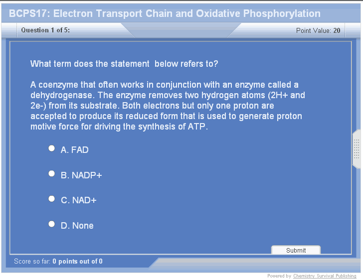 Components of ETC are arranged in the inner mitochondrial membrane involved in the process of electron transport. In biological system, fuel molecules are oxidized by losing electrons, which are transferred through the carrier molecules like NAD and FAD. Finally electrons are donated to oxygen to reduce it to a water molecule. Coenzyme Q is a respiratory electron carrier. Cytochromes are a group of heme containing proteins. The major respiratory cytochromes are b, c and c1 and a or a3.