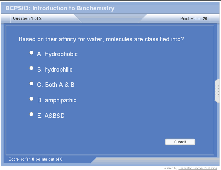 Molecules belong to different chemical groups based on their affinity for water. Hydrophobic groups – they can not form hydrogen with water. Ex: Hydrocarbons. Hydrophilic groups – they are attracted to the charges within water. They can form hydrogen bonds with water. Amphipathic groups – have both polar and non polar groups. Ex: Hydrocarbon chain is non polar and carboxyl group is polar.