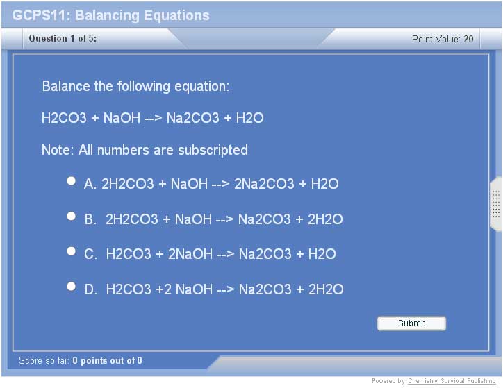 - Multiple methods of balancing equations are worked out in animation.