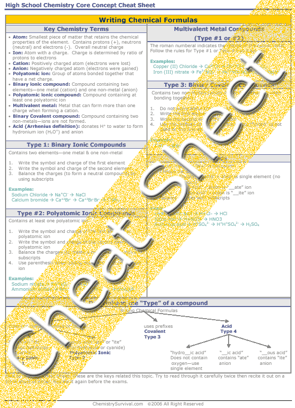 Between a metal and a non-metal and they’ll end with “-ide” on the second word. The metal’s symbol and charge are written, followed by the non-metals’s symbol and charge. The charges are balanced by using coefficients to indicate the number of atoms.