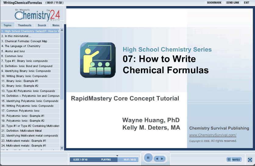 They either begin with “ammonium” or end with “-ate” or “-ite” in the second word (except “hydroxide” and “cyanide”—those are polyatomic ions). A polyatomic ion is a group of atoms that together have a charge. The metal’s symbol and charge are written first (or ammonium, NH4+1, the only polyatomic cation). The polyatomic anion’s symbols and charge are written next. The charges are again balanced with subscripts. If a subscript is added to a polyatomic ion, use parenthesis around the ion.