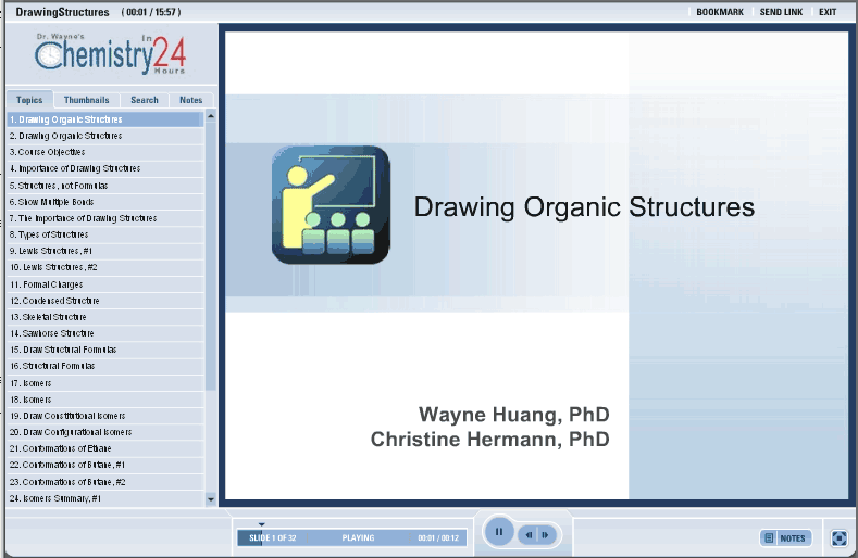 Constitutional isomers have the same formula, but different points of attachment. Configurational isomers have the same formula and the same point of attachment, but different orientation in space. Conformational isomers have the same formula and the same point of attachment, but the rotation about single bonds is different. In the eclipsed conformation of ethane, the front hydrogens block the back hydrogens. In the staggered conformation, the hydrogens are as far away from each other as possible. The staggered conformation is the most stable. For the conformations of butane, the front two carbons remain in place and the back two carbons rotate around the carbon 2 and carbon 3 bond. In the totally eclipsed conformation, one methyl blocks the other methyl. In the gauche conformation, the methyls are 60o apart. In the eclipsed conformation, the methyls are 120o apart. In the anti conformation, the methyls are 180o apart. The stability of butane is anti > gauche > eclipsed > totally eclipsed.