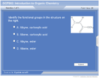 An alkane contains carbon-carbon single bonds. An alkene contains a carbon-carbon double bond. An alkyne contains a carbon-carbon triple bond. An aromatic compound contains a six membered ring with alternating double and single bonds. R, or alkyl, is an alkane that has lost a hydrogen. X is fluorine, chlorine, bromine, or iodine. An alkyl halide (haloalkane) contains an alkyl group and an halogen. An alcohol consists of an alkyl group and an hydroxy group (OH). An ether contains an oxygen, with an R group on both sides. A thiol contains a sulfur, with a R group on one side and an hydrogen on the other side of the sulfur. A sulfide has a sulfur with a R group on both sides. An aldehyde contains a hydrogen attached to the carbon of a C=O. An hydrogen or R group is on the other side. A ketone contains two R groups attached to the carbon of the C=O. An acid halide contains a halogen attached to the carbon of a C=O. A hydrogen or R group is attached on the other side of the carbon. A carboxylic acid contains a C=O with a H or alkyl group and an OH attached to the carbon of the C=O. An ester has a H or alkyl group and an OR (alkoxy) group attached to the carbon of the C=O. An anhydride contains two C=O groups separated by an oxygen. R and / or H groups are attached to the carbon of the C=O. Amines contain at least one alkyl group attached to a nitrogen. The other positions are hydrogens or alkyl groups. Amides have a nitrogen attached to a carbon of the C=O. The other positions are hydrogens or alkyl groups. A nitrile has an alkyl group attached to the carbon of the C=N.