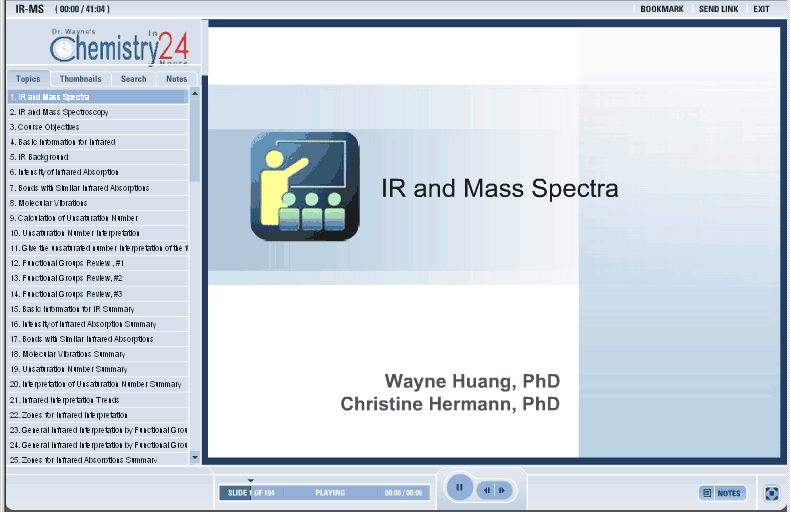 The five zones for IR interpretation are described. Distinct trends appear in an IR spectrum for alcohol, alkyne, alkane, aryl, vinyl, aldehyde, carboxylic acid, alkyne, nitrile, carbonyl functional groups, alkene, and amine