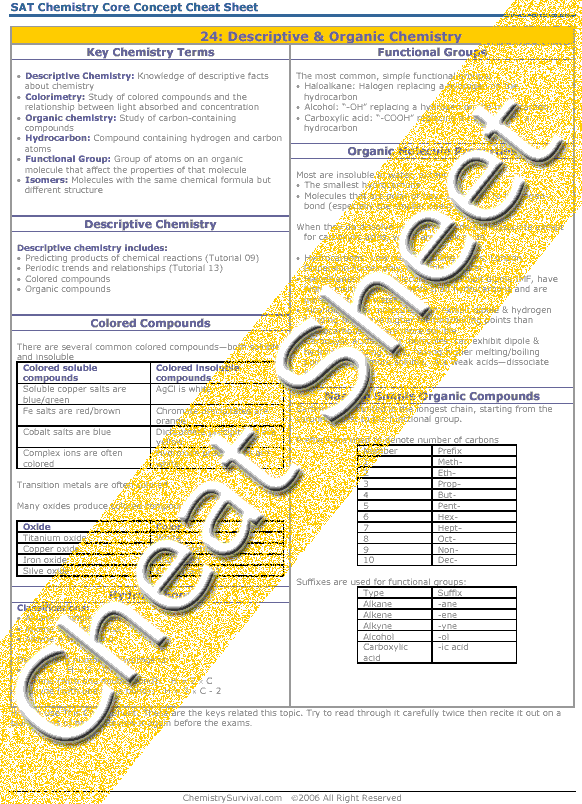 Organic chemistry is the study of carbon-containing molecules. Simple organic compounds can be found on the AP Exam. Compounds that contain only hydrogen and carbon are hydrocarbons, but many organic molecules contain functional groups. The most common, simple functional groups: