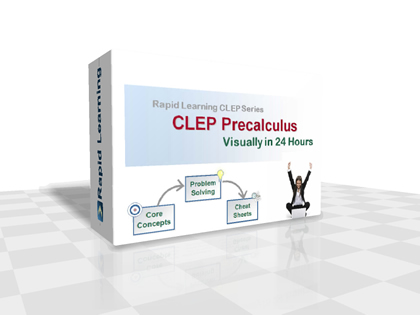 RL513: CLEP Precalculus Visually in 24 Hours CLEP is the fast track to get college credit and Rapid Learning is the fast track to prepare for CLEP. The required topics are overwhelming to study by self reading in absence of classroom instruction. Rapid Learning overcomes this learning gap by offering visual lectures developed and narrated by college professors. Let our experts guide you through your study by following our signature Rapid Learning System - Visual Tutorials + Problem Drills + Cheat Sheets. This visual course provides the comprehensive coverage of the required topics by the CLEP, with one-to-one match with the official required topics. Study the most relevant content and study them powerfully with Rapid Learning. Core Unit #1 – The CLEP Basics
