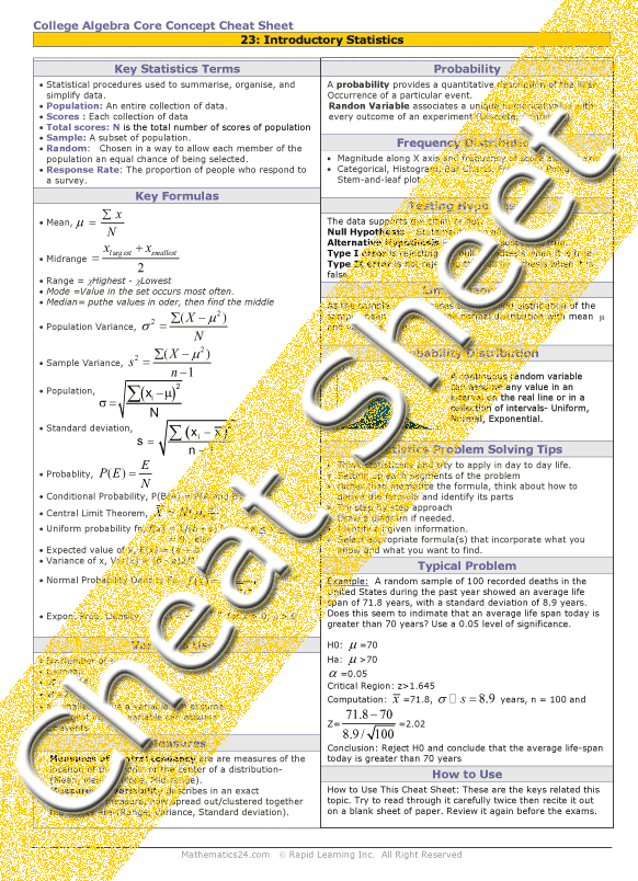 Core Concept Tutorial Problem Solving Drill Review Cheat Sheet