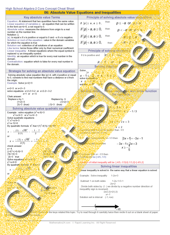 See all 24 lessons in High School Algebra 2, including concept tutorials, problem drills and cheat sheets: