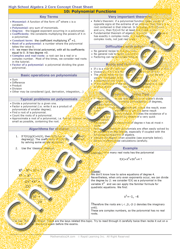 See all 24 lessons in High School Algebra 2, including concept tutorials, problem drills and cheat sheets: