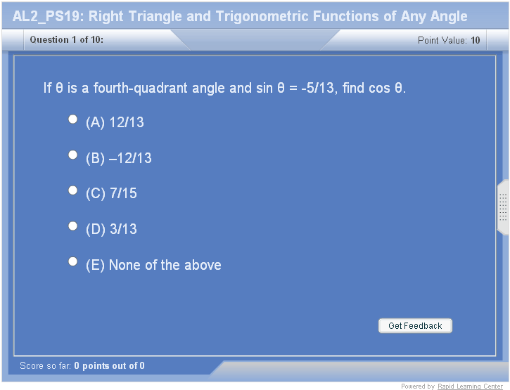 be an angle in standard position and let P(x,y) be a point, not the origin, on the terminal side that can be in any quadrant. If