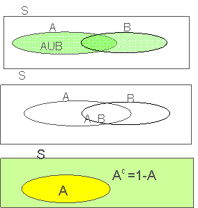 - P(AUB)=P(A)+P(B)-P(A∩B)=P(A)+P(B)-P(A)P(B)