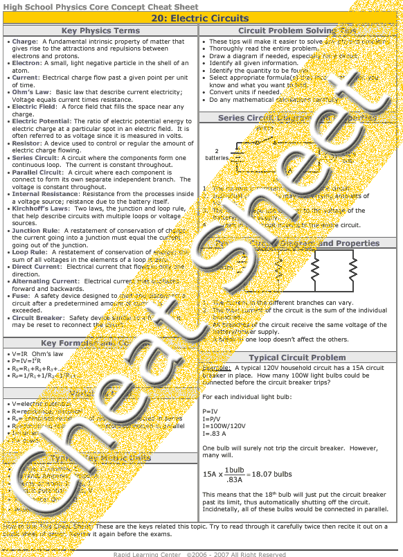See all 24 lessons in high school  physics, including concept tutorials, problem drills and cheat sheets: